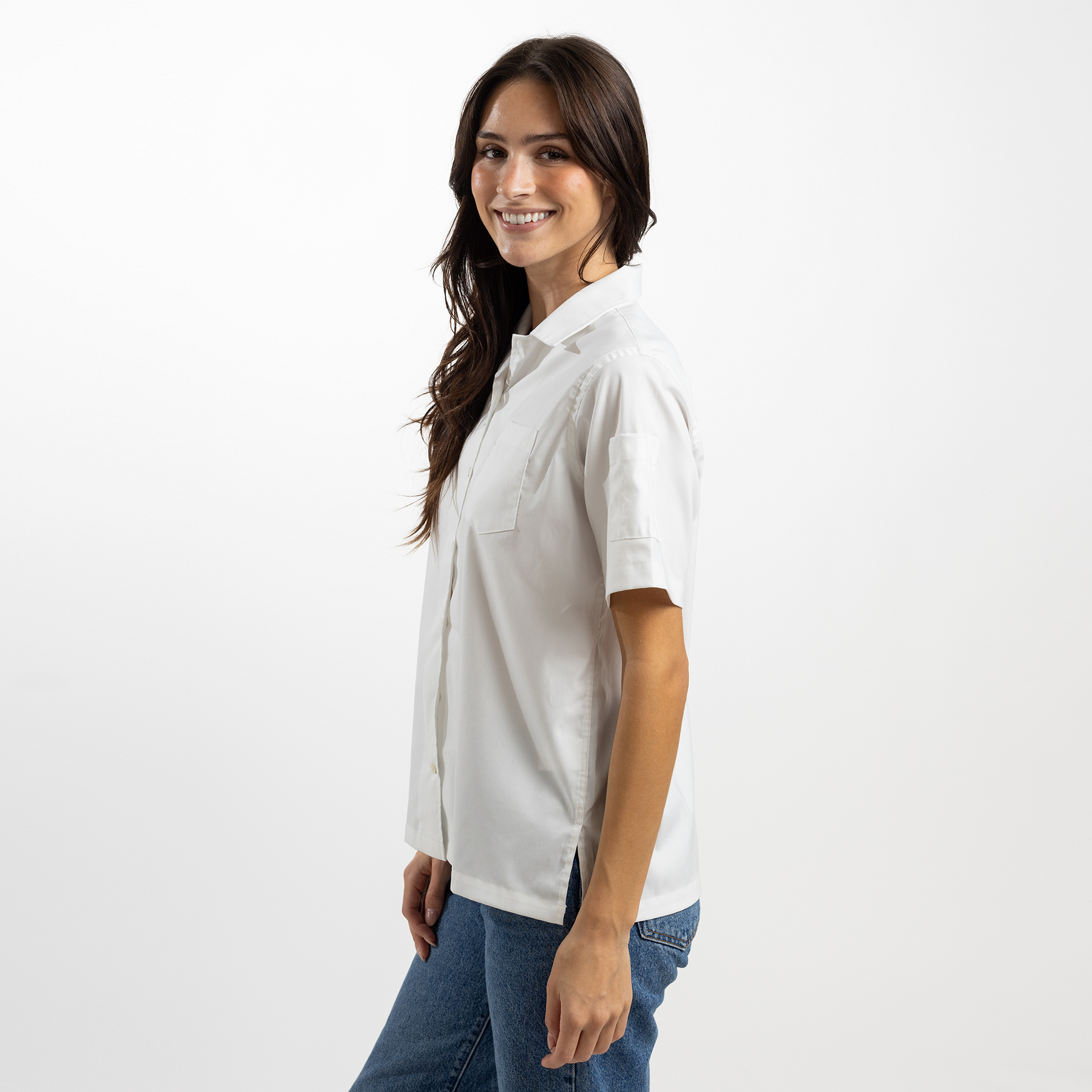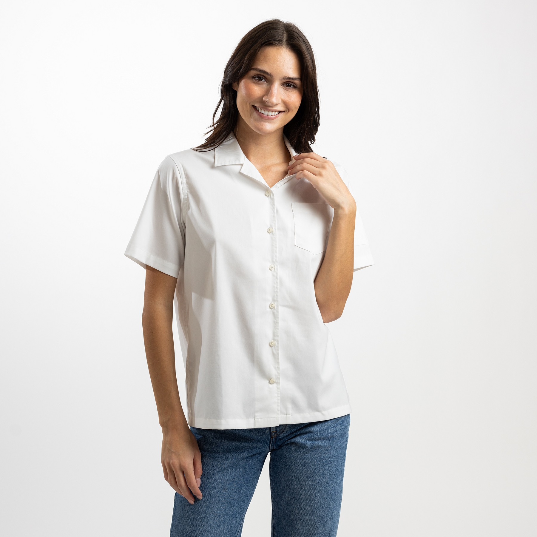 Features: Left Chest Pocket, Pen Pocket on Left Sleeve, Camp Collar, French Placket, Pearl Buttons, Clean Finished Seams, Interior Locker Loop, Side Vents